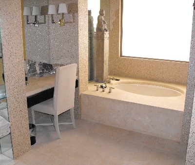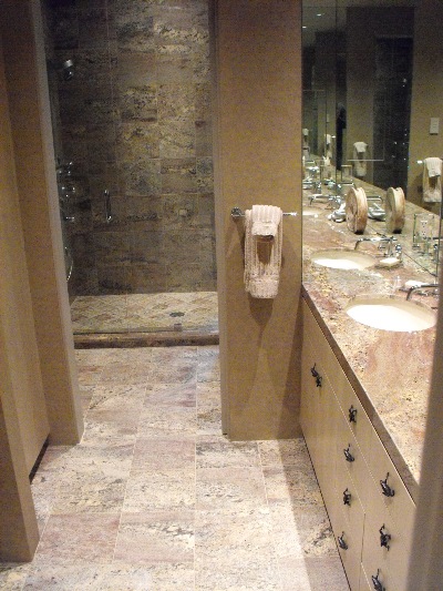 Guest bath of which I had to hand hone floor pieces for none slip.